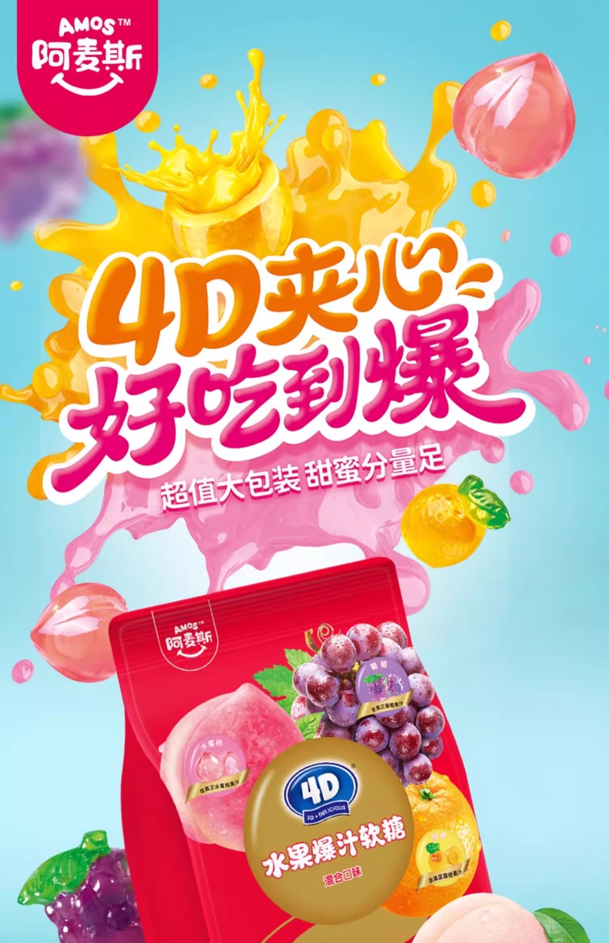 4D水果味爆汁软糖夹心QQ糖爆浆糖果小零食