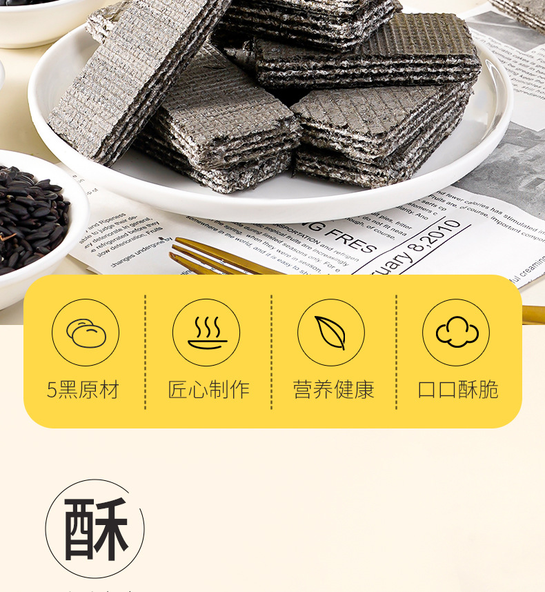 五黑粗粮威化饼干黑豆黑芝麻粗粮饼干